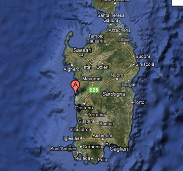 Funtana Meiga is another windsurf spot on the Sinis Peninsula not mentioned elsewhere and where you can stay the night – no facilities but quiet out of season. It is at the end of the holiday village – go to end of tarmac road (right turn as you come into village), onto dirt and turn to sea (you are near a house with no-one in). If wet, just stay on tarmac road. This is a wave spot in a NW wind, nice wave, can get big, trouble is the launching is between rocks, it’s easy actually, but a bit off putting. Good thing is the wave does not break that far in, so you are not contending with white water as well.